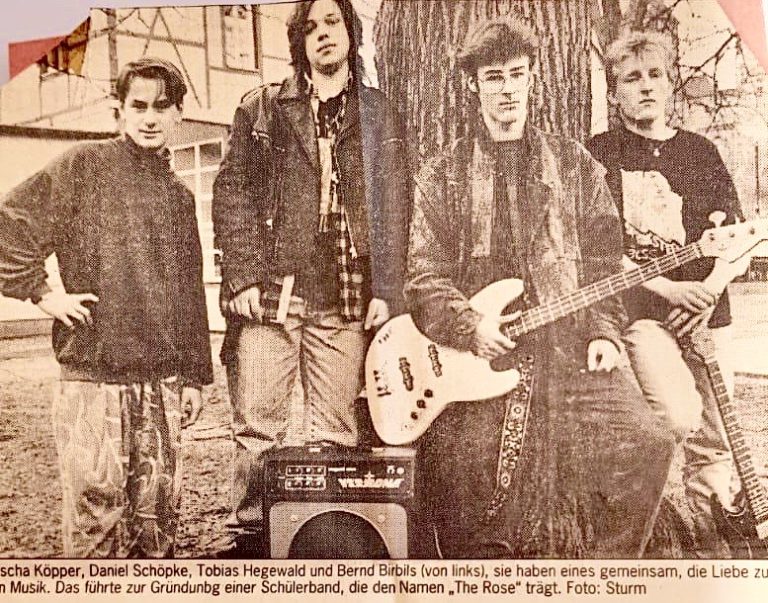 Die erste Umbesetzung der Band folgte schon nach der 2. Probe. Der Gitarrist Daniel Schöppke, von allen liebevoll Bodeck genannt sties zur Band dazu und der weibliche Gesangspart wurde gänzlich gestrichen. Schlussendlich komplettierte Sascha Kepper am Schlagzeug die Gruppe und „The Rose“ war geboren. Mit neuem Proberaum und viel Enthusiasmus begann man ein kleines Set Up einzuspielen, welches im Dezember 93 erstmals vor befreundetem Publikum in einem kleinen Gartenlokal dargeboten wurde. Gespielt wurden ca. 10 Songs, davon 8 mal der Titel `Knooking on Heavens Door´ in verschiedensten bis hin zu unmöglichsten Versionen.